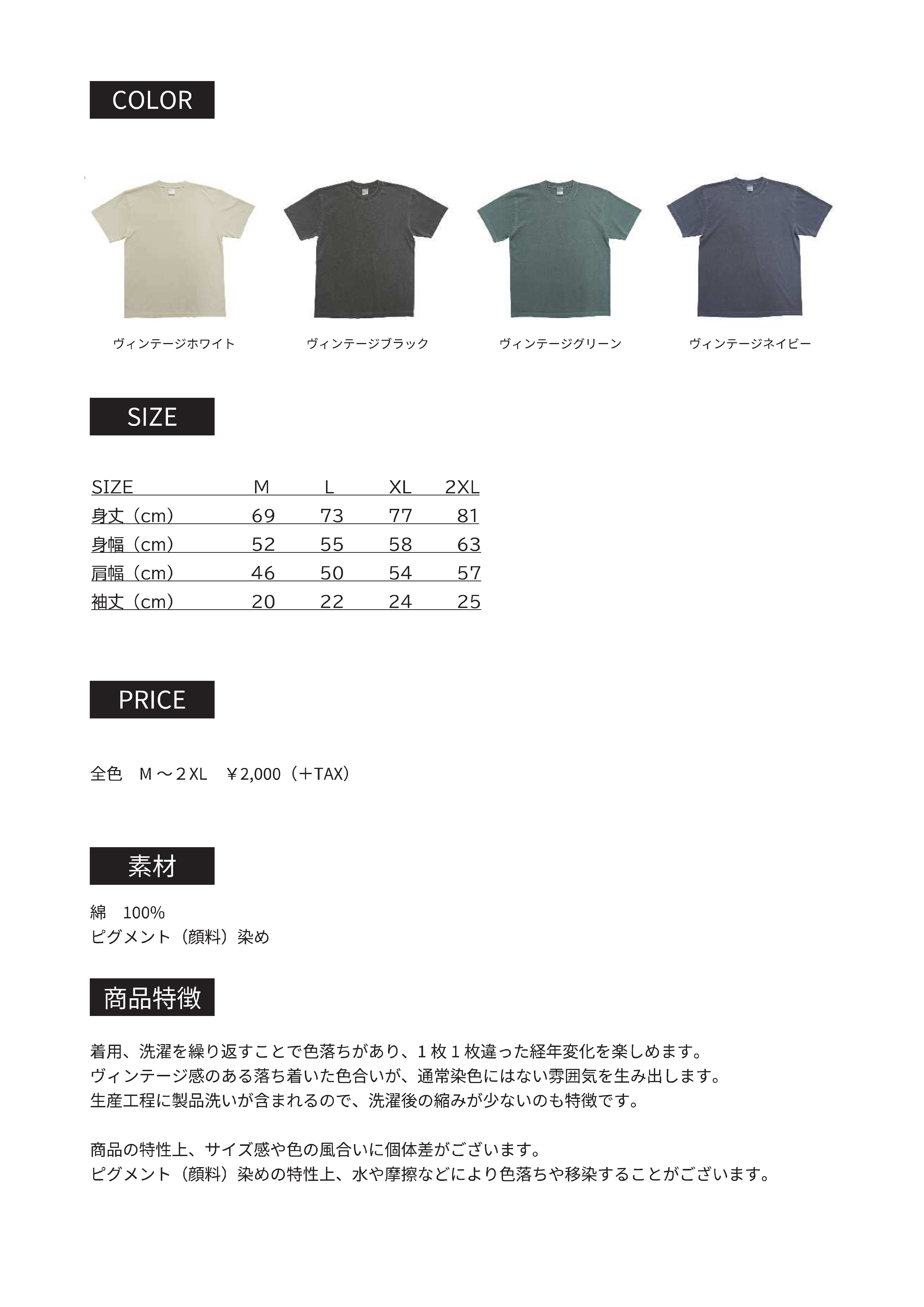ハイグレードコットンガーメントダイTシャツ