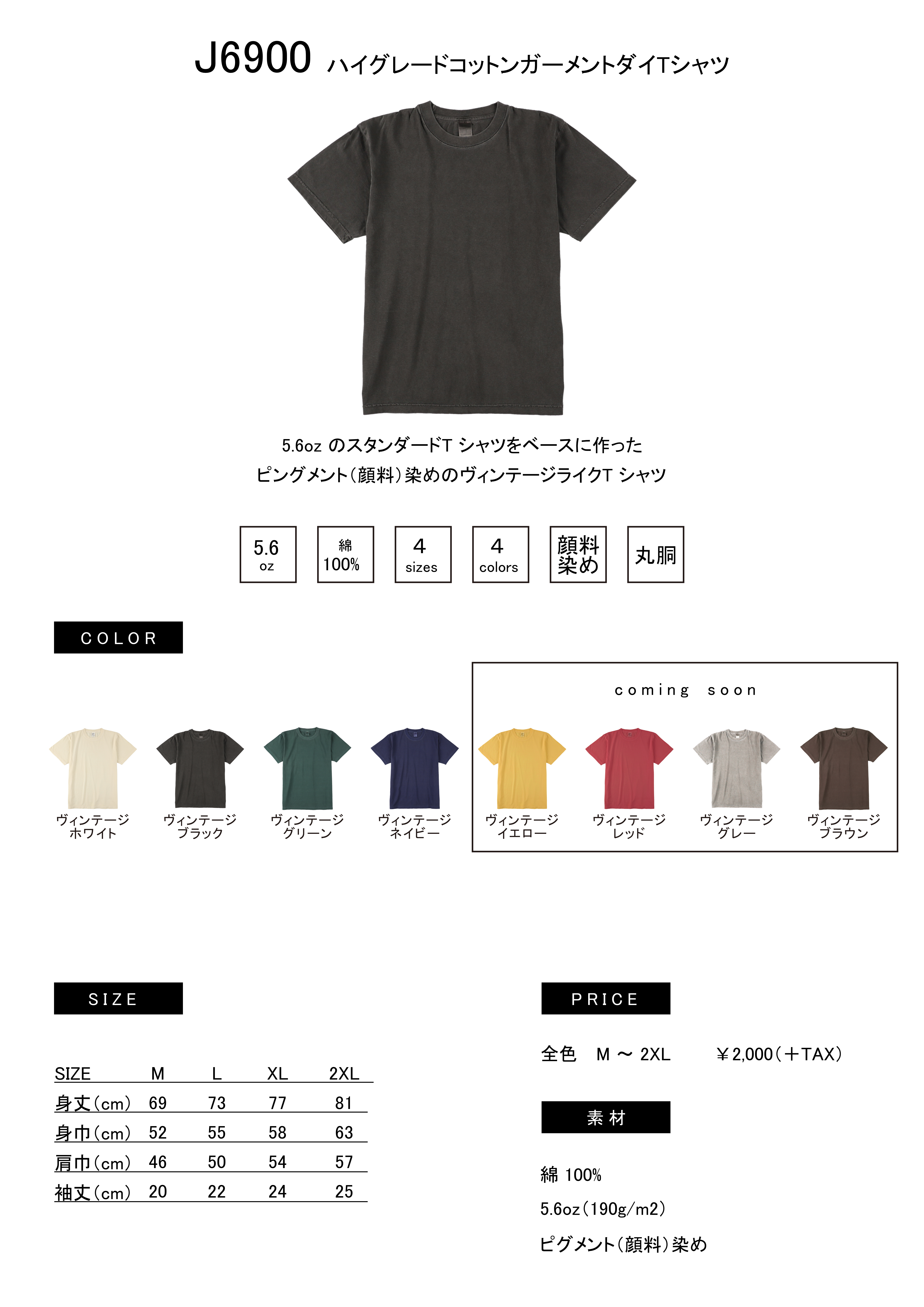 ハイグレードコットンガーメントダイTシャツ