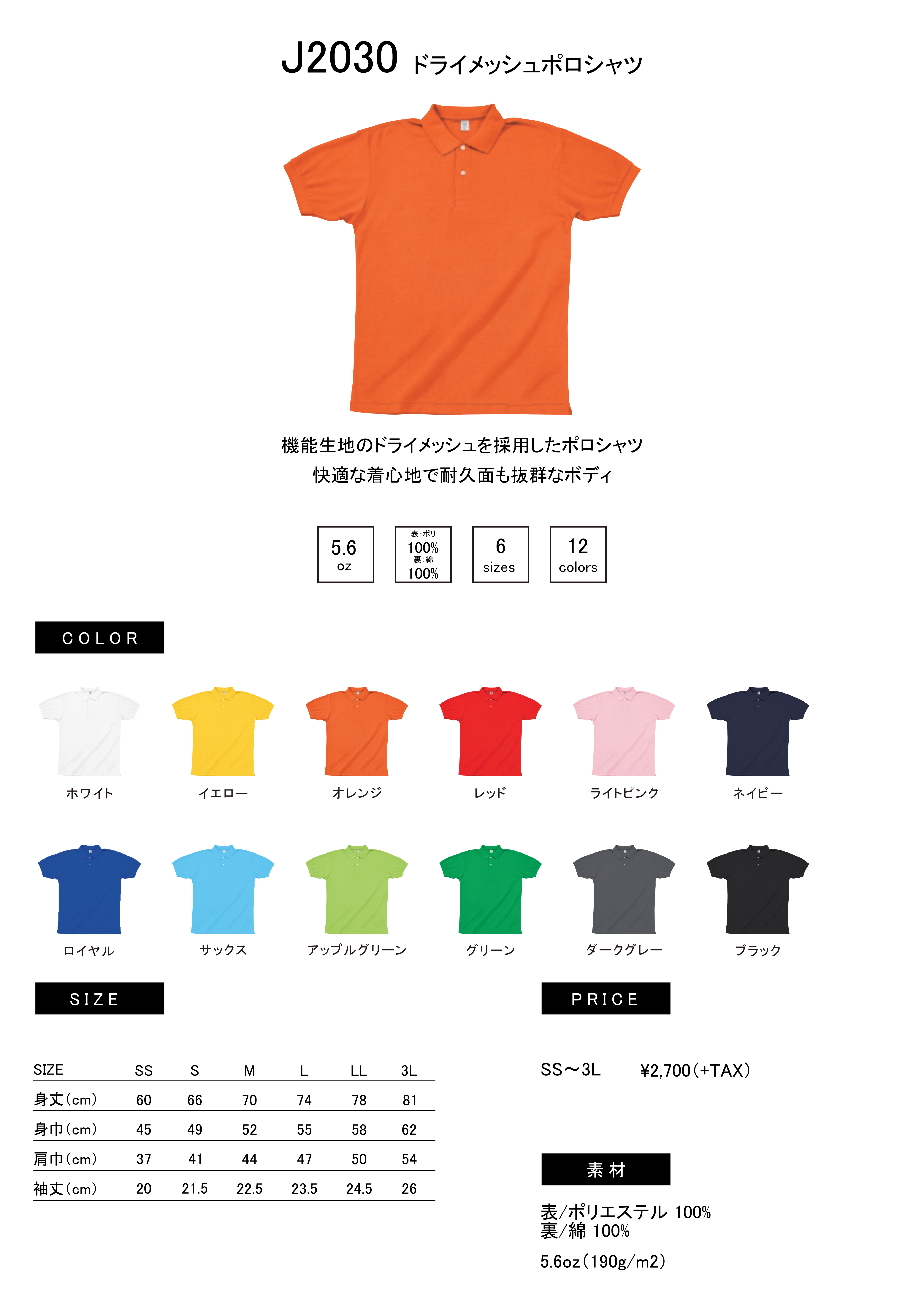 ドライメッシュポロシャツ