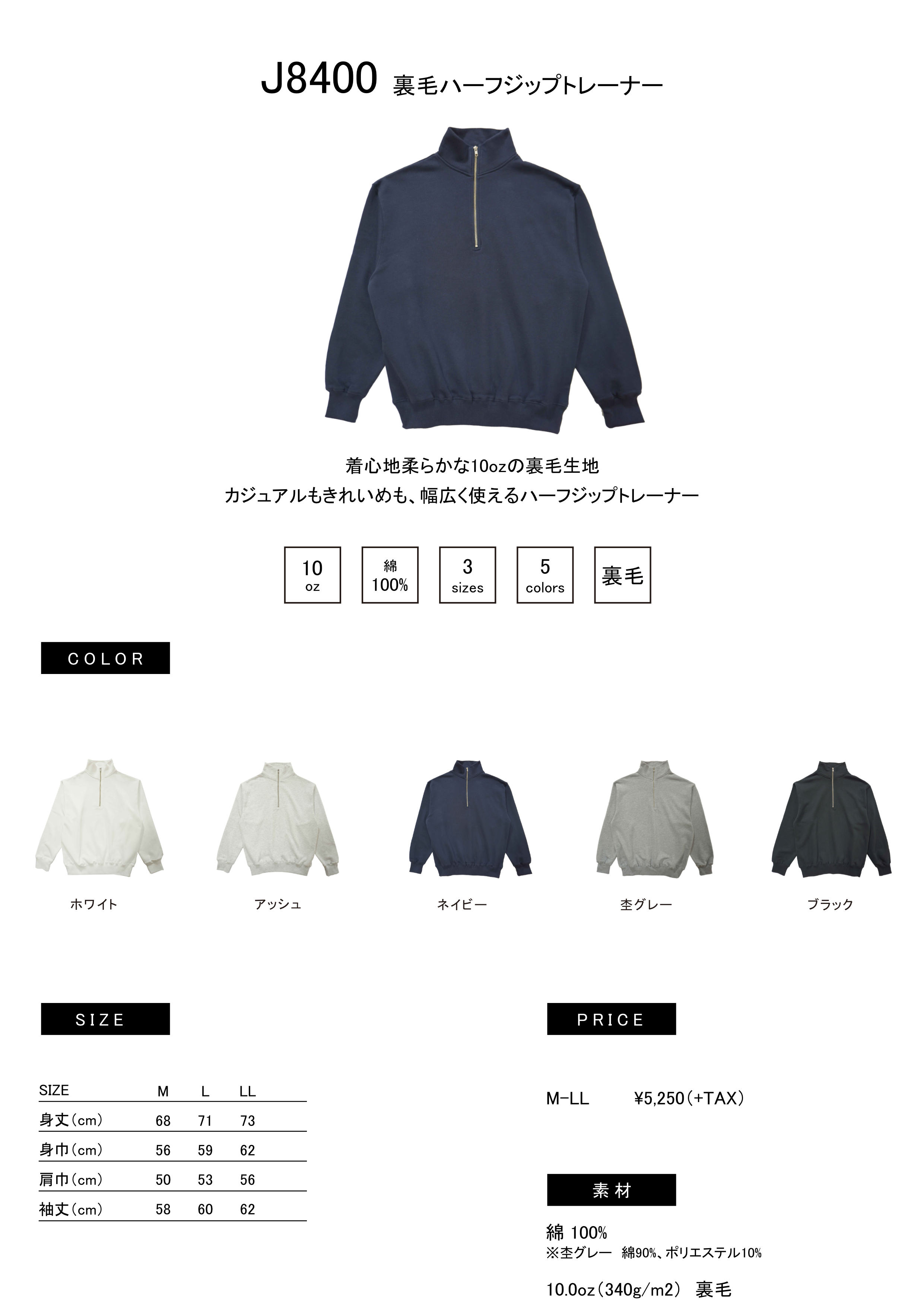 裏毛ハーフジップトレーナー